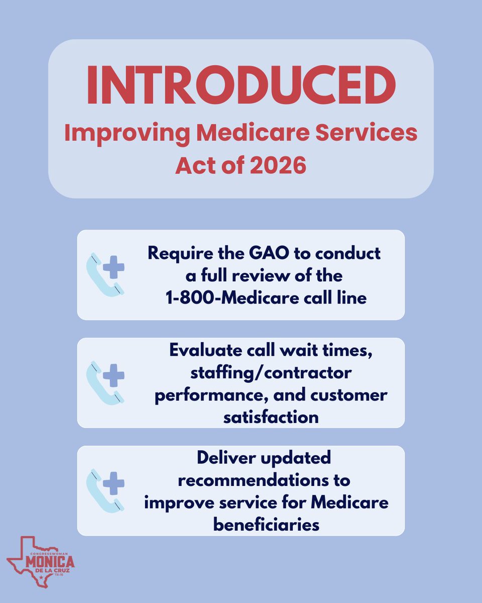 My bipartisan Improving Medicare Services Act of 2026 will improve the 1-800-Medicare call line and ensure seniors have access to reliable, high-quality support. Alongside @RepBarrett and @RepCorrea, we are committed to making sure seniors receive the dependable service they